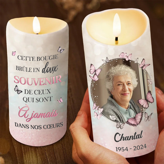 Sa lumière demeure- Bougie LED avec photo Cadeau commémoratif