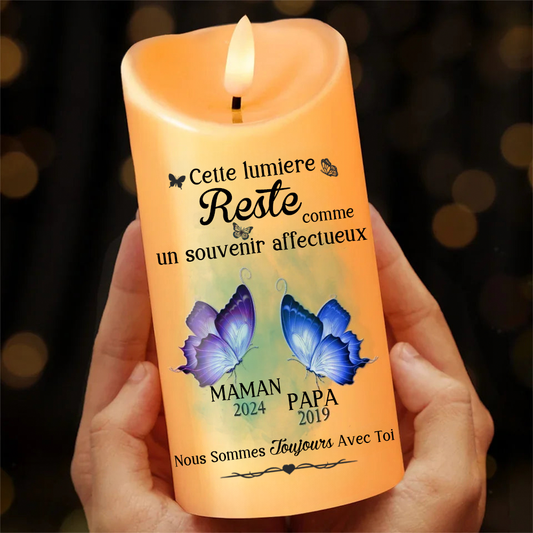 Bougie LED Personnalisée avec Papillon - Cadeau de Deuil