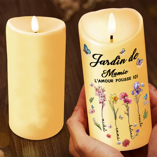 Bougie LED avec fleurs de naissance - Cadeau pour Mamie et Maman