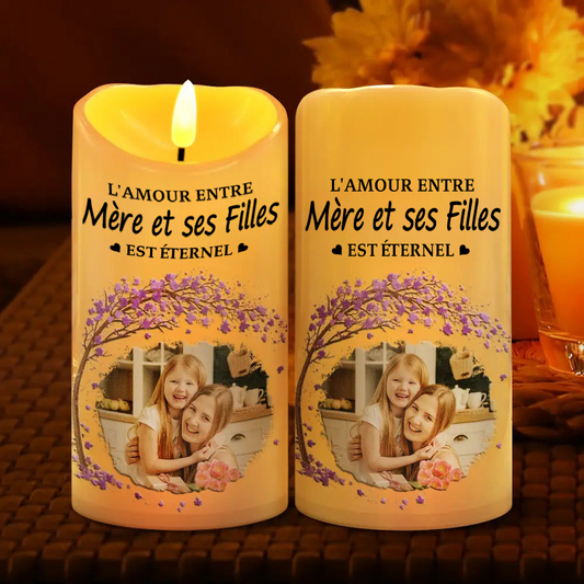 L’amour entre... est éternel – Bougie LED personnalisée avec photo