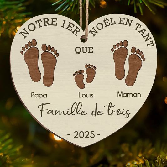 Notre Premier Noël en Famille de ... – Ornement en Bois Personnalisé avec Empreintes