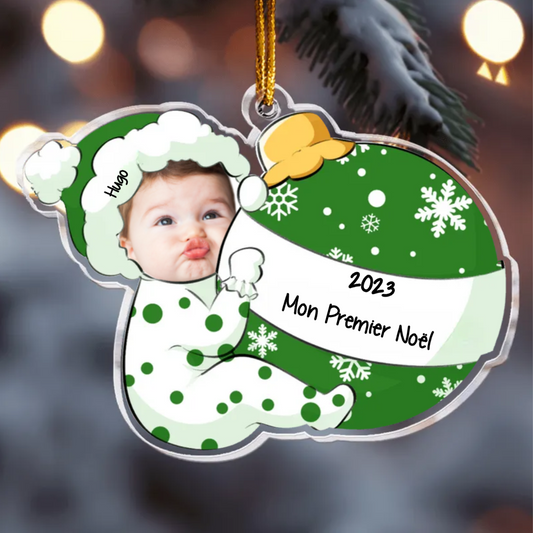 Cadeau de Noël pour bébé - Ornement photo en acrylique