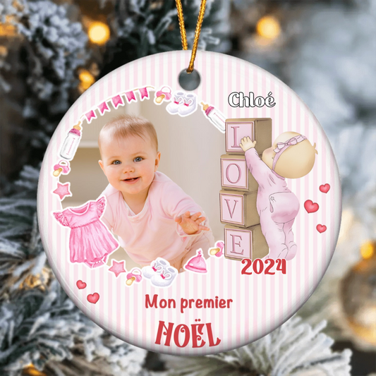 Ornement de Noël personnalisé en céramique pour bébé « Mon premier Noël »