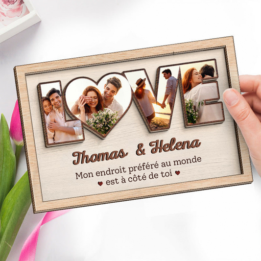 LOVE – Plaque en bois personnalisée avec photos pour couple amoureux