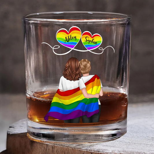 Couples arc-en-ciel – Verre à whisky personnalisé avec 2 personnages, pour couples LGBT