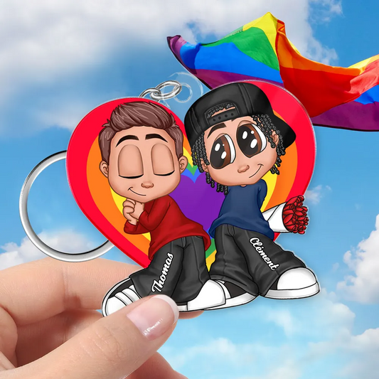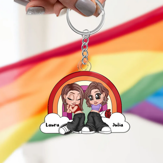 Porte-clés personnalisé en acrylique – Cadeau pour couple LGBT arc-en-ciel