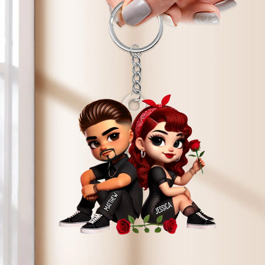 Porte-clés en acrylique personnalisé « Couple avec roses », cadeau pour couple