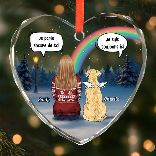 Orement de Noël en verre en forme de cœur personnalisée – Hommage à nos animaux disparus