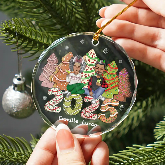 2025 Famille Gâteau & Arbres à biscuits Décoration de Noël personnalisée en verre pour sapin de Noël avec parents, enfants et animaux domestiques