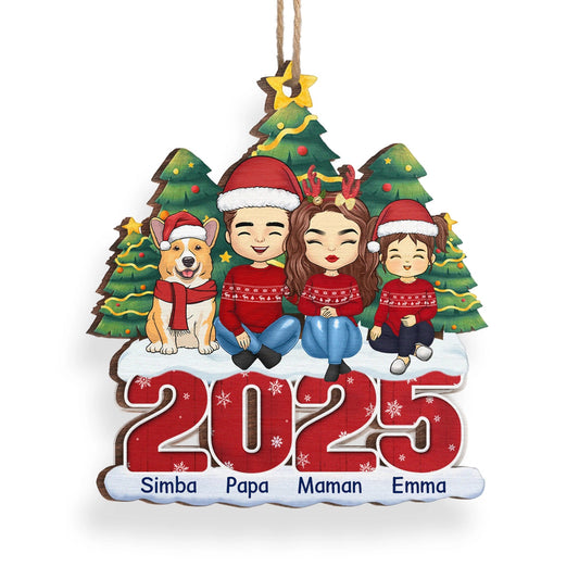 2025 Famille - Orement en bois personnalisé Décoration de Noël avec parents, enfants, chien et chat