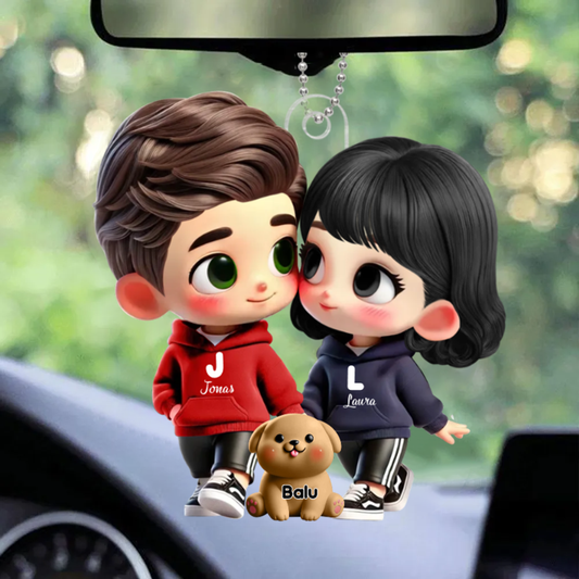 Pendentif de voiture personnalisé avec couple cartoon et animaux de compagnie – Cadeau pour couple