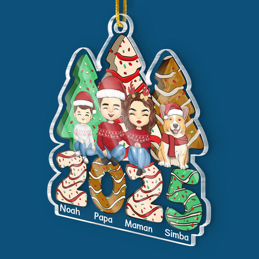 2025 Famille - Orement de Noël personnalisée en acrylique avec parents, enfants et animaux domestiques