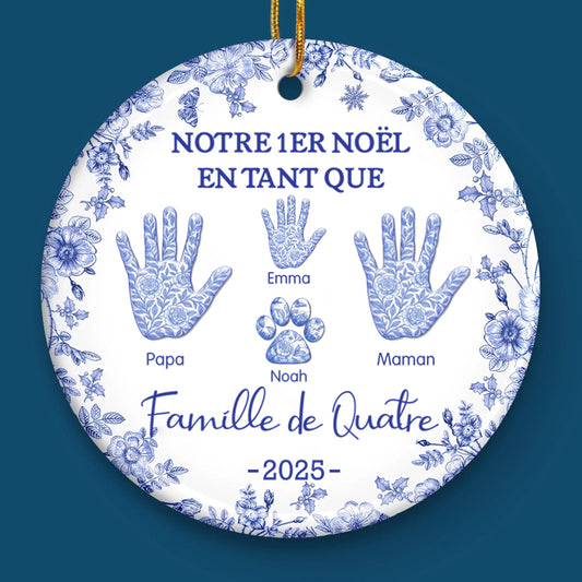 Notre premier Noël en famille... Décoration pour sapin de Noël avec empreinte de main et nom