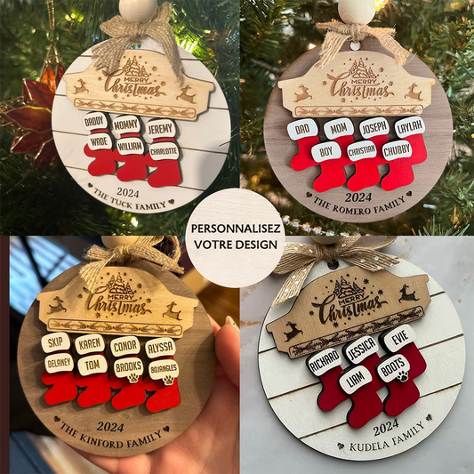 Ornement de Noël en bois avec 1 à 10 noms - Design de chaussettes de Noël