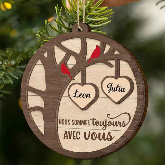 Décoration commémorative en bois à 2 couches personnalisée – Orement de Noël avec cardinal