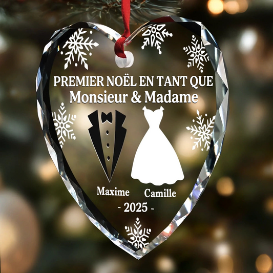 Premier Noël de jeunes mariés-Décoration en verre en forme de cœur personnalisée Orement de Noël