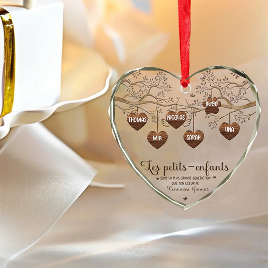 Arbre généalogique avec noms et texte Pendentif en verre personnalisé Ornement de Noël
