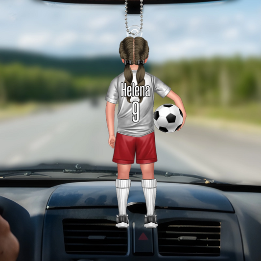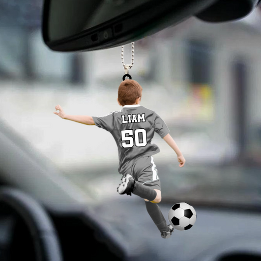 Enfant footballeur – Pendentif de voiture personnalisé pour fils et fille