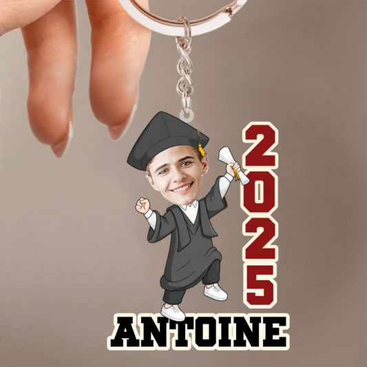 Porte-clés photo personnalisé avec année et prénom pour la remise des diplômes