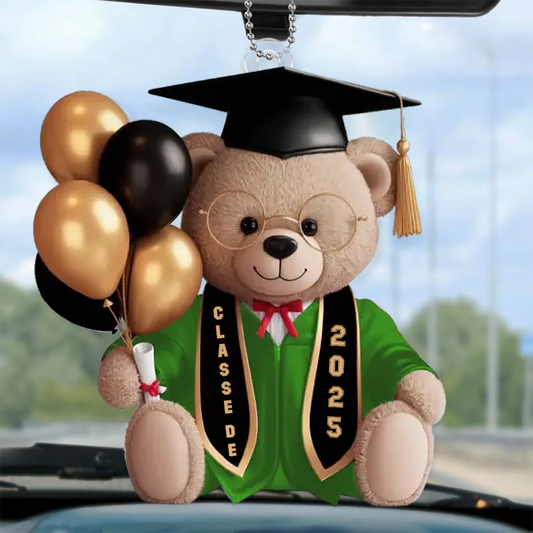 Pendentif de rétroviseur personnalisé pour la remise de diplôme – Ours avec prénom, année et choix de couleur