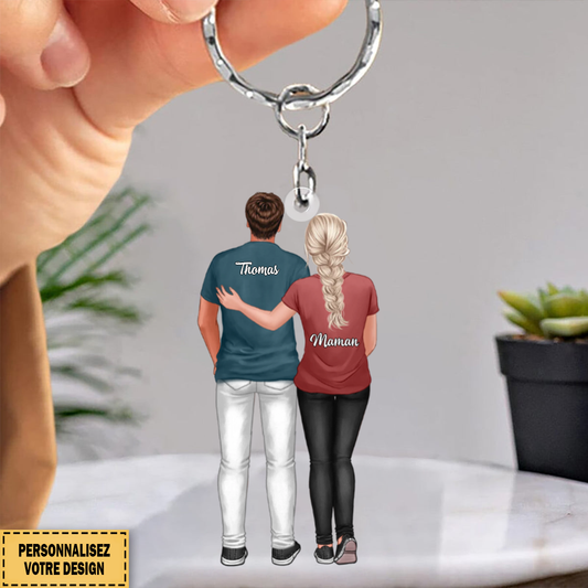 Porte-clés en acrylique Maman et Fils avec prénoms