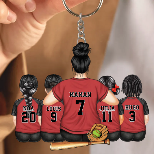 Maman équipe de baseball - Porte-clés acrylique personnalisé