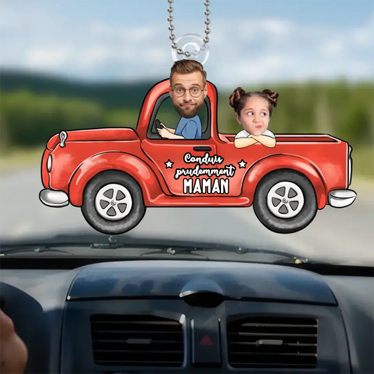 Clip pare-soleil "Conduis prudemment" avec photo - Cadeau personnalisé pour famille et couple