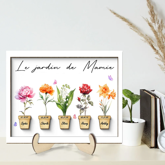 Tableau en bois personnalisé avec fleurs de naissance pour mamie et maman