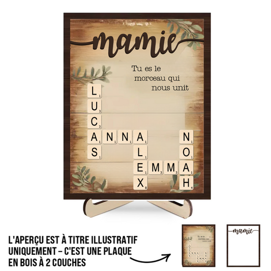 Tableau en bois personnalisé style mots croisés – Cadeau pour Mamie