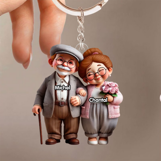Porte-clés en acrylique pour couple âgé avec noms – Cadeau pour couple et grands-parents