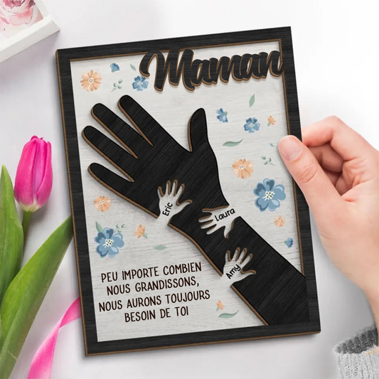 Plaque en bois personnalisée avec des mains pour maman et mamie