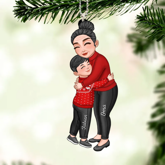 Pendentif de Noël personnalisé - Figures de famille enlacées avec noms personnalisables