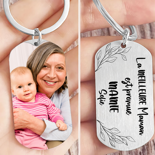 Porte-clés en acier inoxydable avec photo et nom pour belle-maman