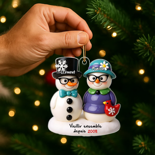 Couple de bonhommes de neige – Décoration de Noël personnalisée avec noms