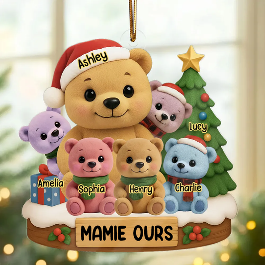 Ornement en acrylique personnalisé – Décoration de sapin avec motif d’ours, cadeau pour grand-mère