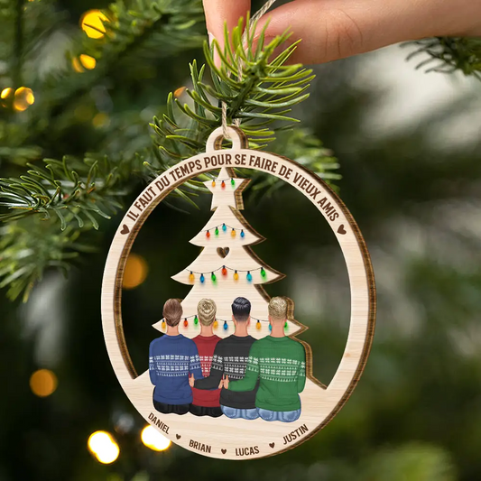 Ornement en bois personnalisé avec 2 à 6 personnes – Décoration de sapin de Noël, cadeau pour amis