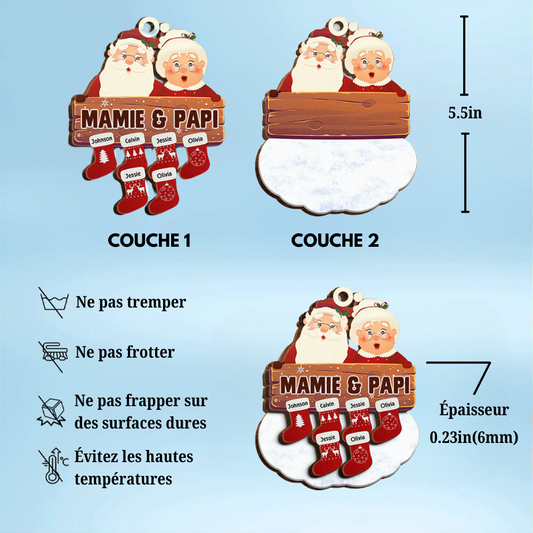 Pendentif de Noël personnalisé - Père Noël et grand-mère avec noms personnalisables sur chaussettes de Noël