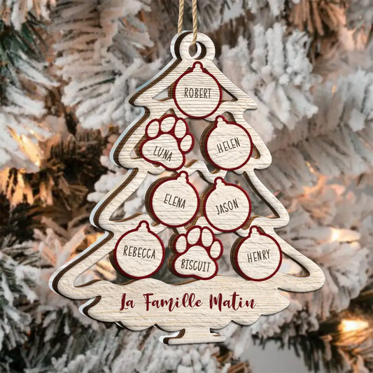 Arbre de famille avec icône d'animal de Noël – Ornement mixte personnalisable à 2 couches
