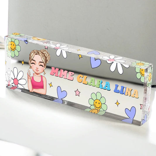 Plaque de bureau personnalisée pour enseignant – Motif crayon