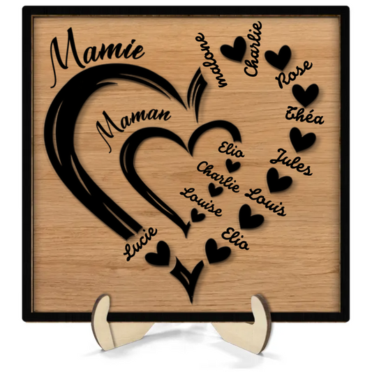 Plaque en bois personnalisée 2 couches pour maman et mamie
