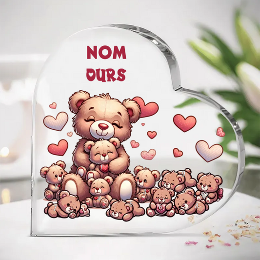 Ours cœur acrylique avec 1-8 noms pour maman et mamie