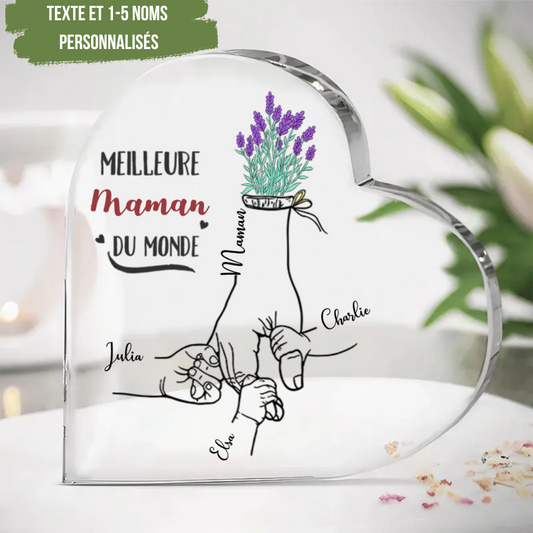 Cœur acrylique main dans la main pour maman et grand-mère