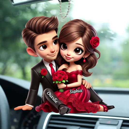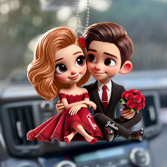 Couple avec bouquet de roses – Pendentif en acrylique personnalisé, cadeau pour couple