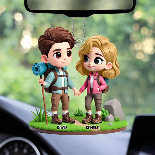 Pendentif en acrylique « Couple camping » personnalisé avec noms, cadeau pour couple