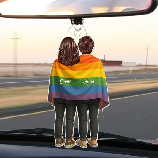 Pendentif en acrylique avec drapeau arc-en-ciel et nom – Cadeau pour couple LGBT
