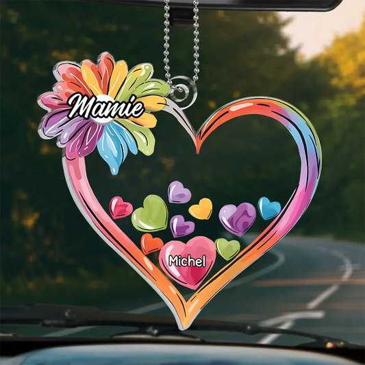 Porte-clés voiture personnalisé en acrylique avec cœurs colorés – Pour mamie et maman