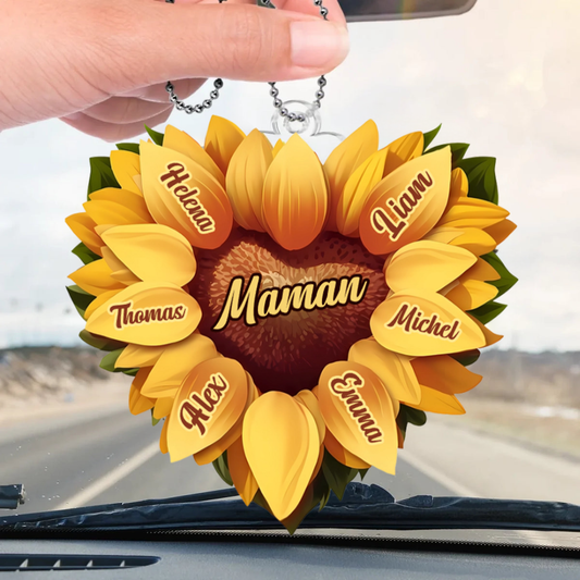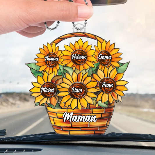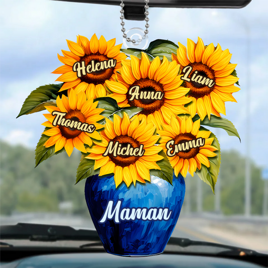 Pendentif personnalisé avec tournesols et vase pour maman et mamie