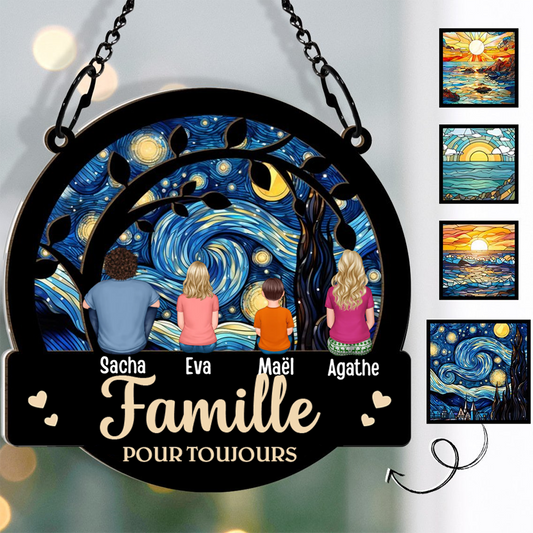 Famille pour toujours - Ornement de fenêtre personnalisé en acrylique et bois attrape-soleil