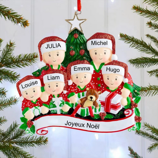 Décorations de Noël Famille Famille en ouvrant les cadeaux 2-6 noms