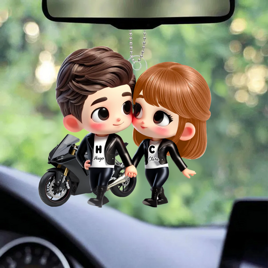 Porte-voiture en acrylique Cartoon pour couple à moto – Cadeau pour couple